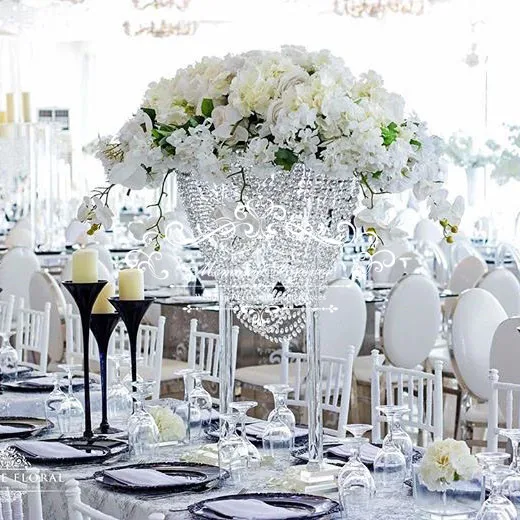 60cm Tall Wedding Crystal Table Centerpiece Silver Flower Stand