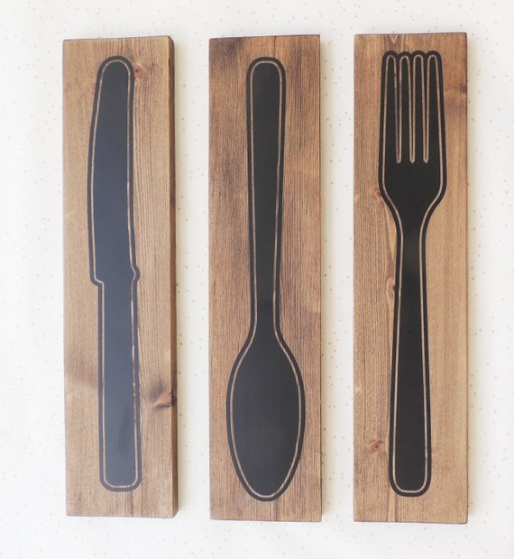 Wooden Kitchen Decor Cutlery Signs Cafe Decor Tea Room Wall Etsy