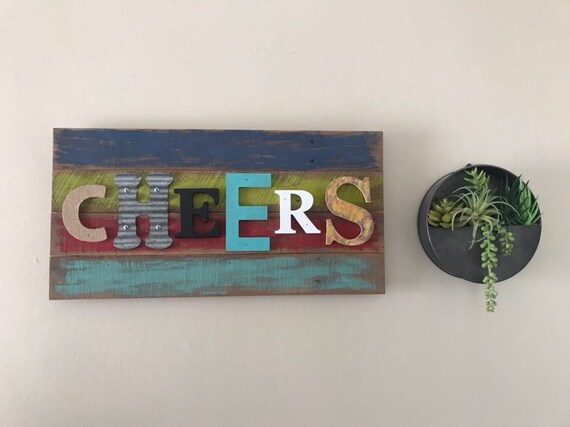 Cheers Wooden Sign Rustic Kitchen Decor Bar Decor Farmhouse Etsy