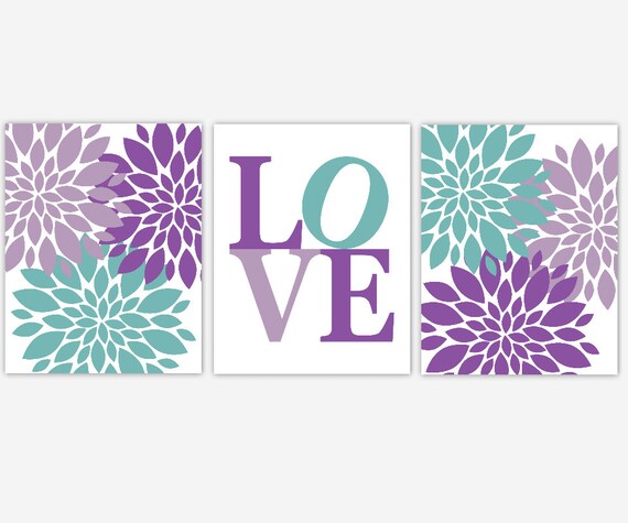 Baby Girl Nursery Wall Art Purple Teal Flower Burst Girl Room