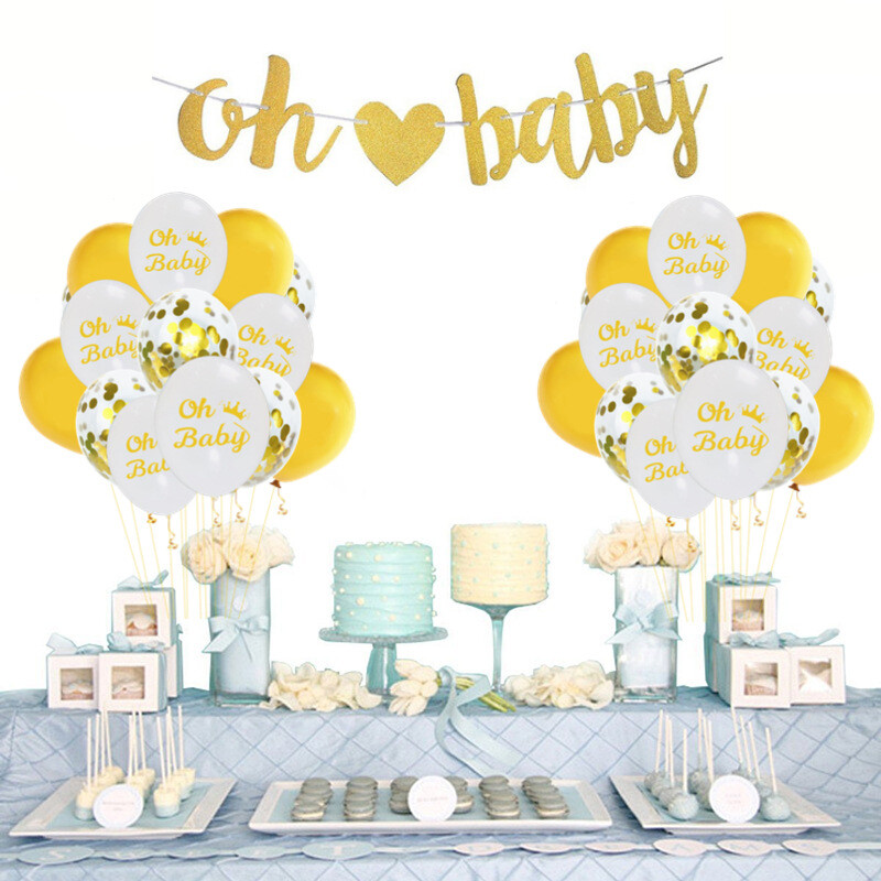34pcs Elegant Baby Shower Gender Reveal Decorations Gold Banner