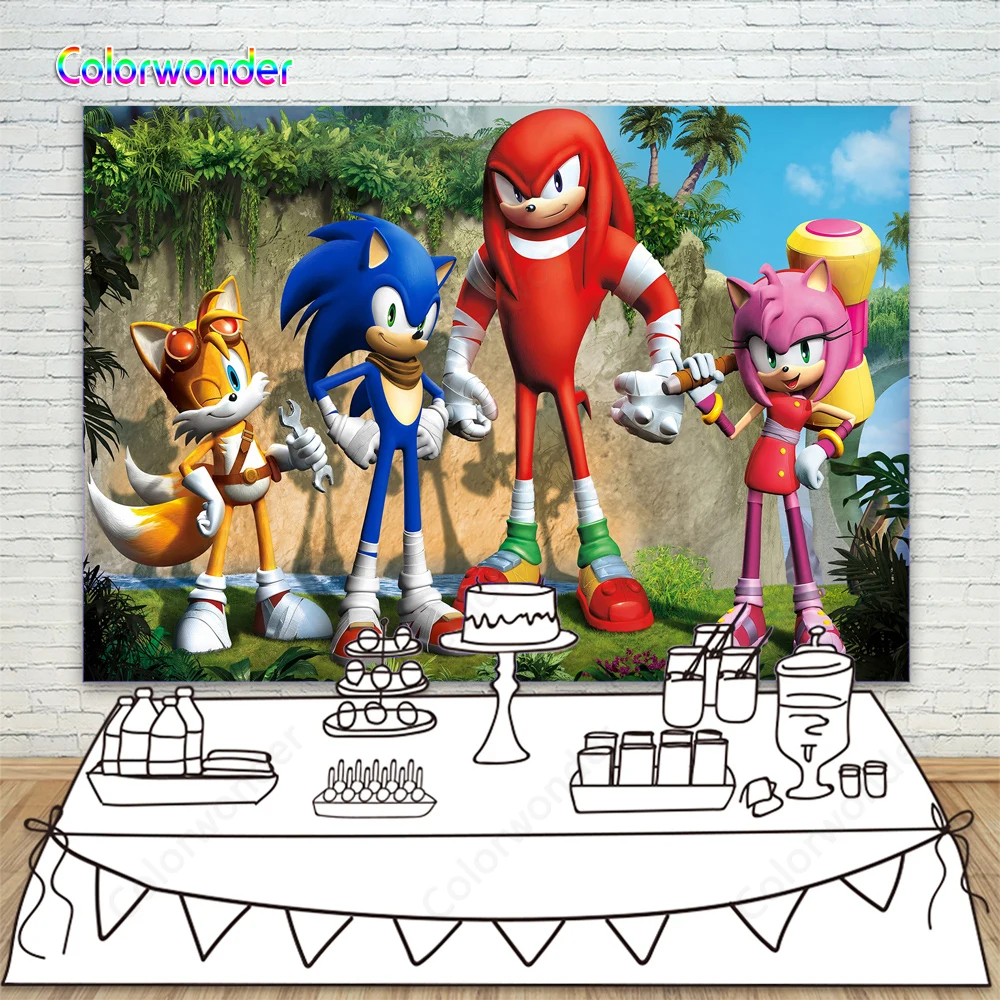 Cartoon Sonic Backdrops For Kids Birthday Party Banner Baby Shower