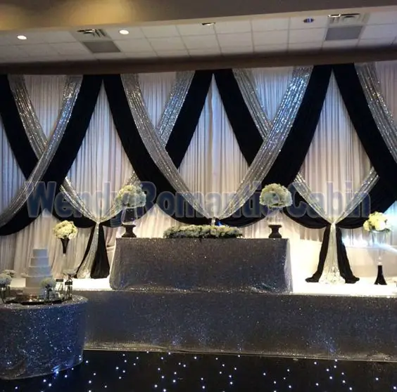 10ft X 20ft White Wedding Backdrop Curtain With Black Color And