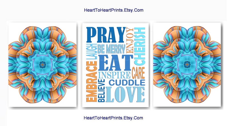 Orange Blue Gray Kitchen Poster Set Kitchen Decor Kitchen Etsy