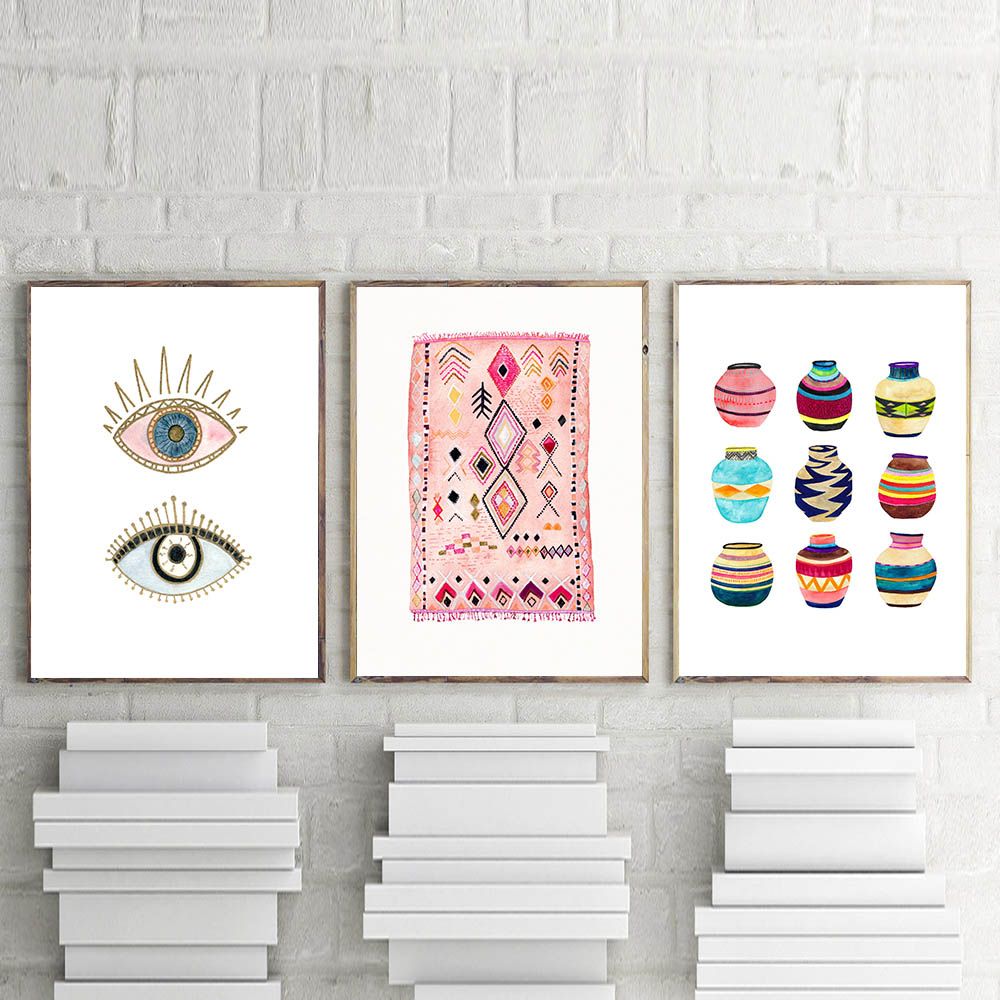 2020 Moroccan Rug Art Painting Boho Wall Pictures Eye Tribal Woven