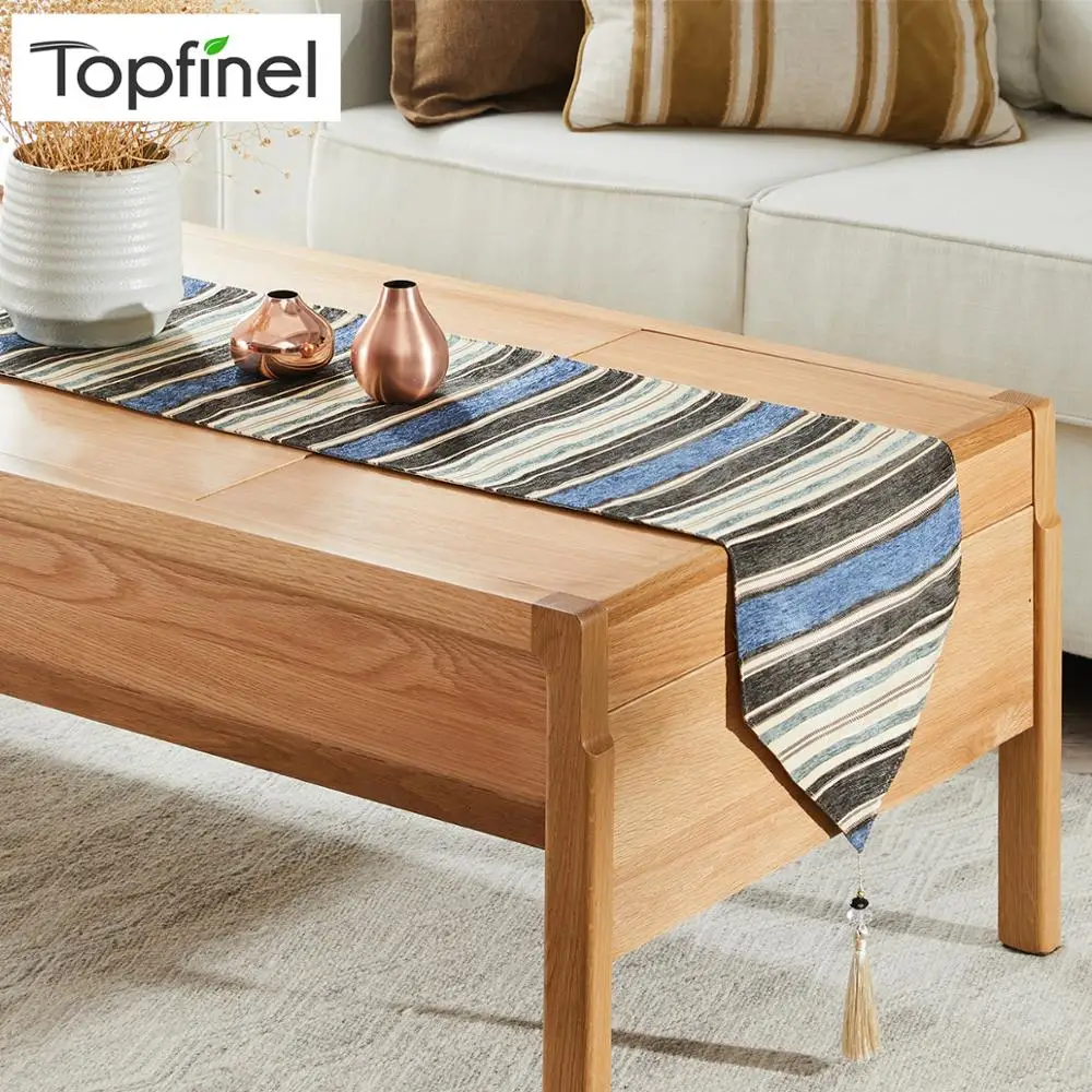 Topfinel Table Runners Colorful Stripes With Tassels Chenille
