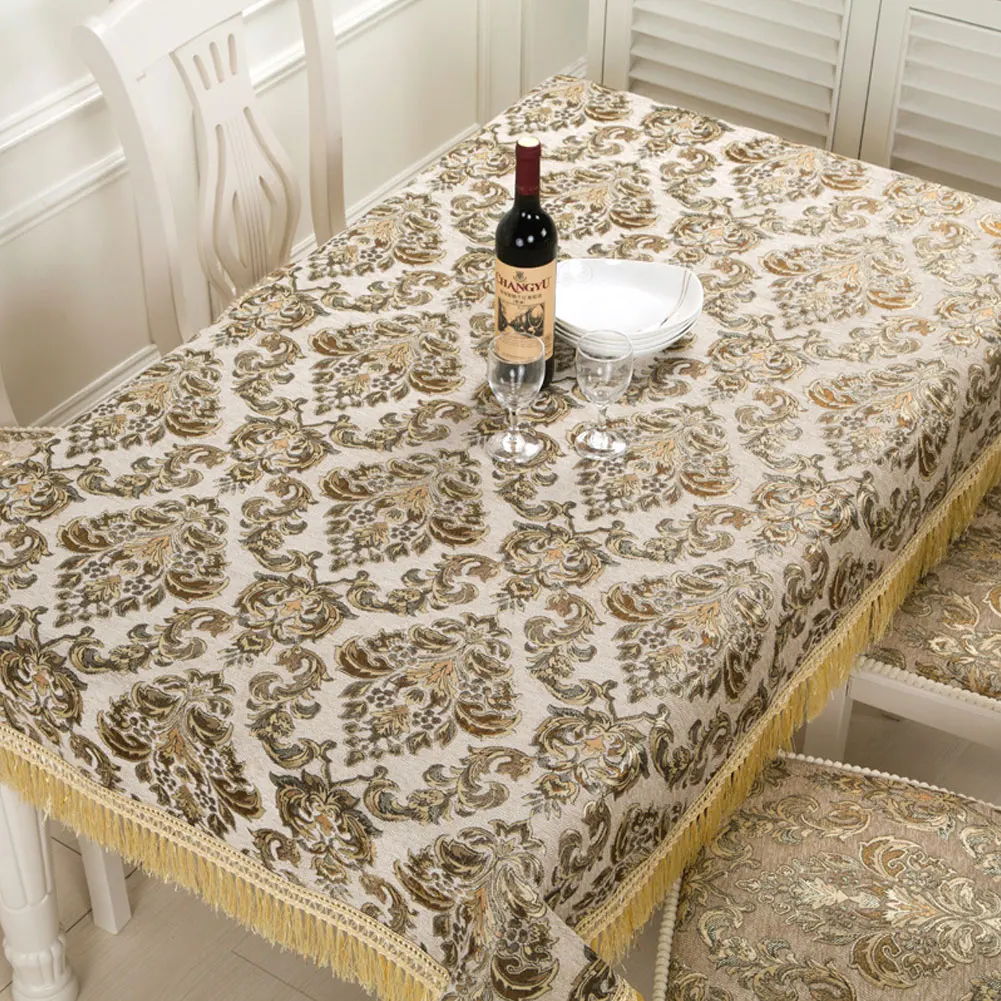 1pc European Rectangle Tablecloth With Tassels Golden Bottom
