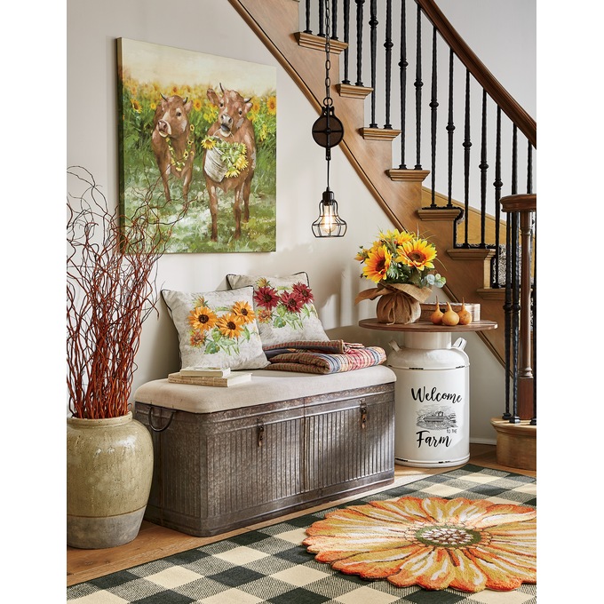 C F Home 18 In X 18 In Happy Sunflower Cow Indoor Outdoor