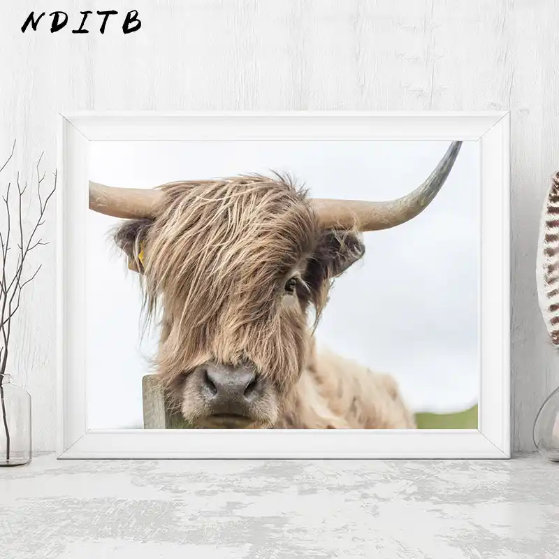 Nditb Highland Cow Wall Art Canvas Painting Animal Posters And