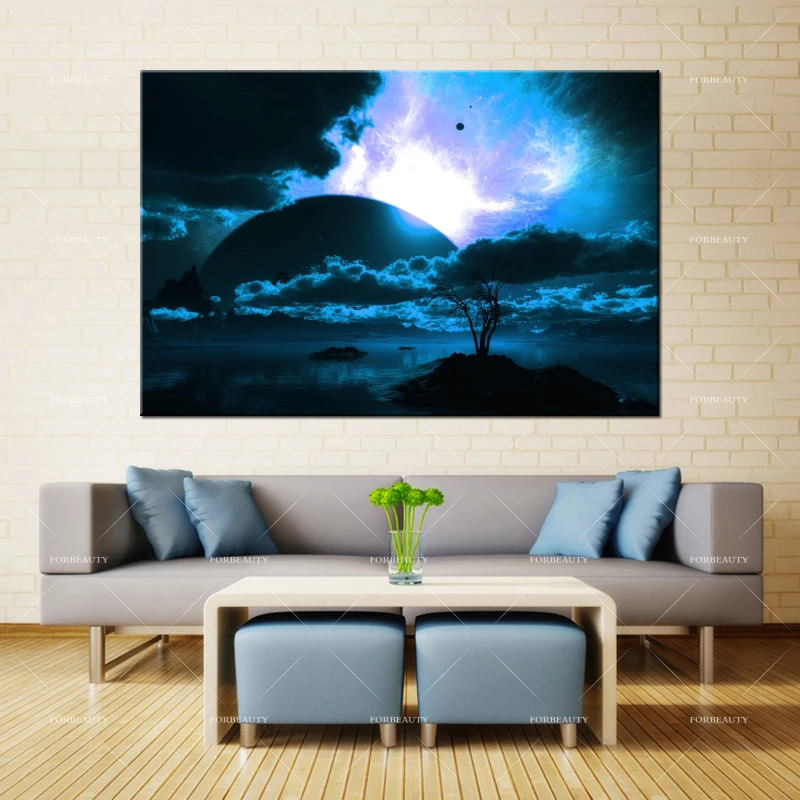 Forbeauty Canvas Painting Wall Art Surreal Dark Blue Spray