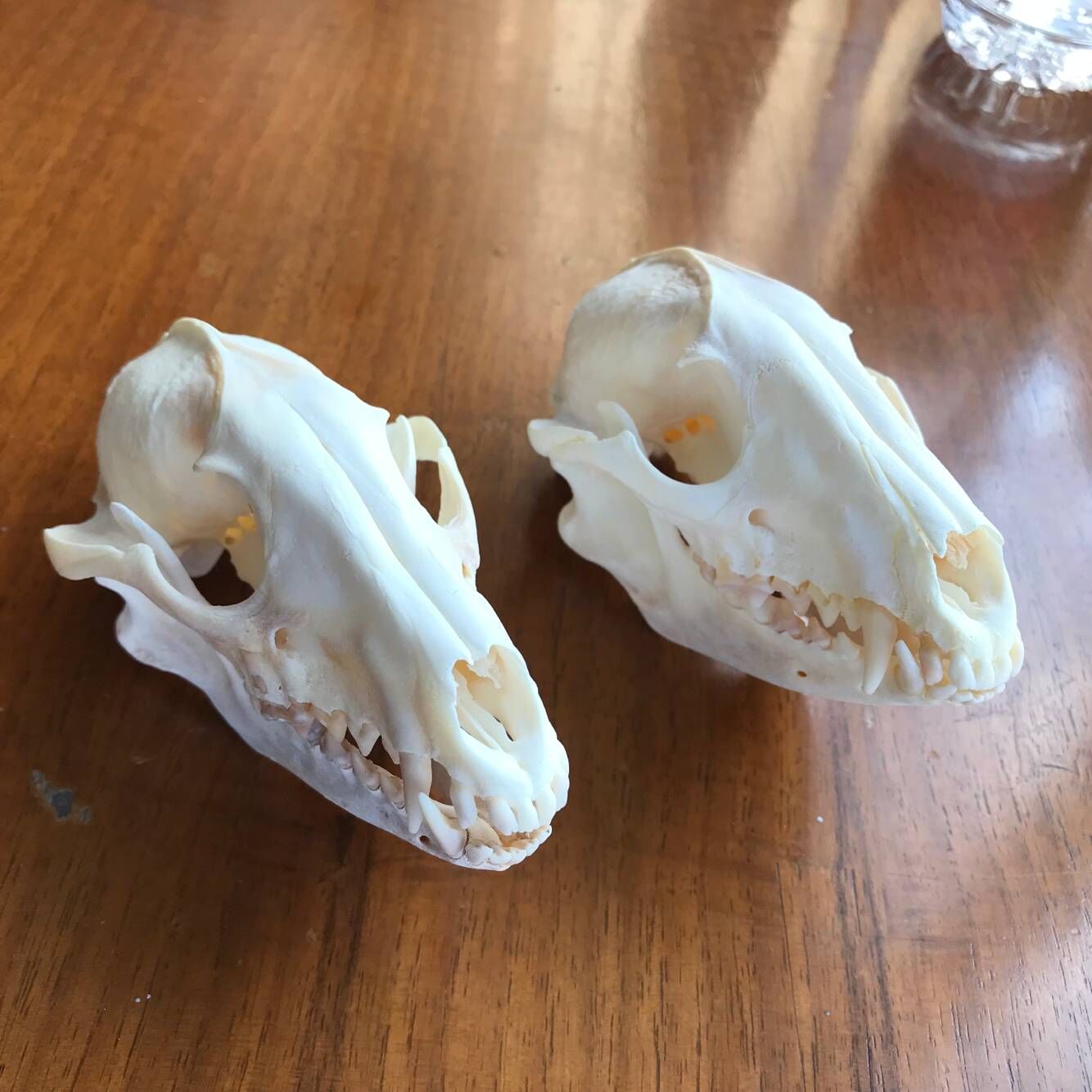 2pcs Nyctereutes Procyonoides Raccoon Dog Skull Taxidermy Real