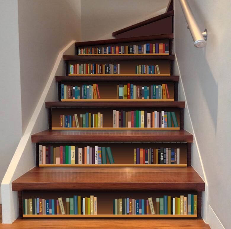 Living Room Bookshelf Stair Stickers Decorative Bookcase Creative