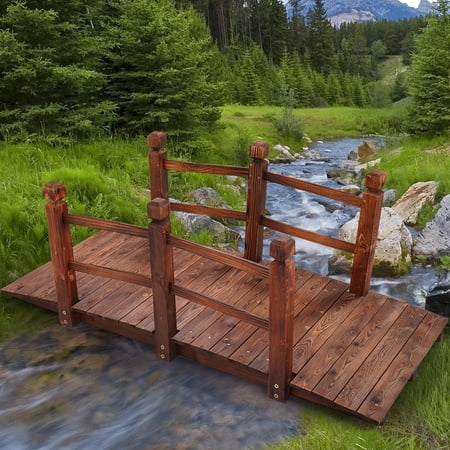 Jaxpety 5 Wooden Garden Bridge Stained Finish Decorative Pond