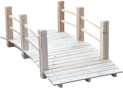 Outsunny 5ft Wood Garden Bridge Outdoor Decorative Landscape Side