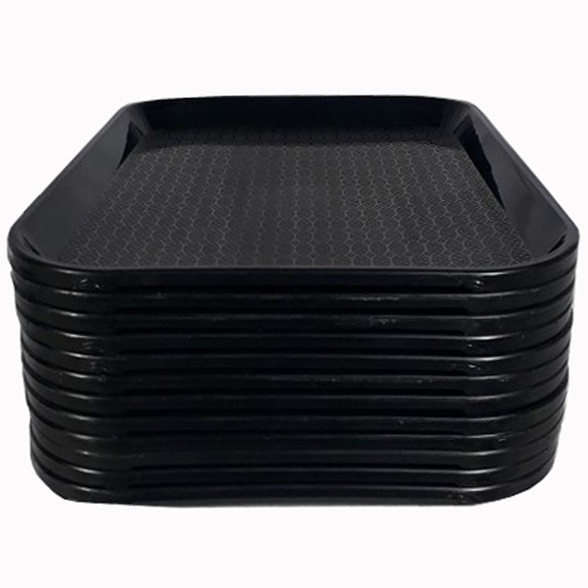 Black Pack Of 3 Square Hard Plastic Serving Trays Buffet Catering