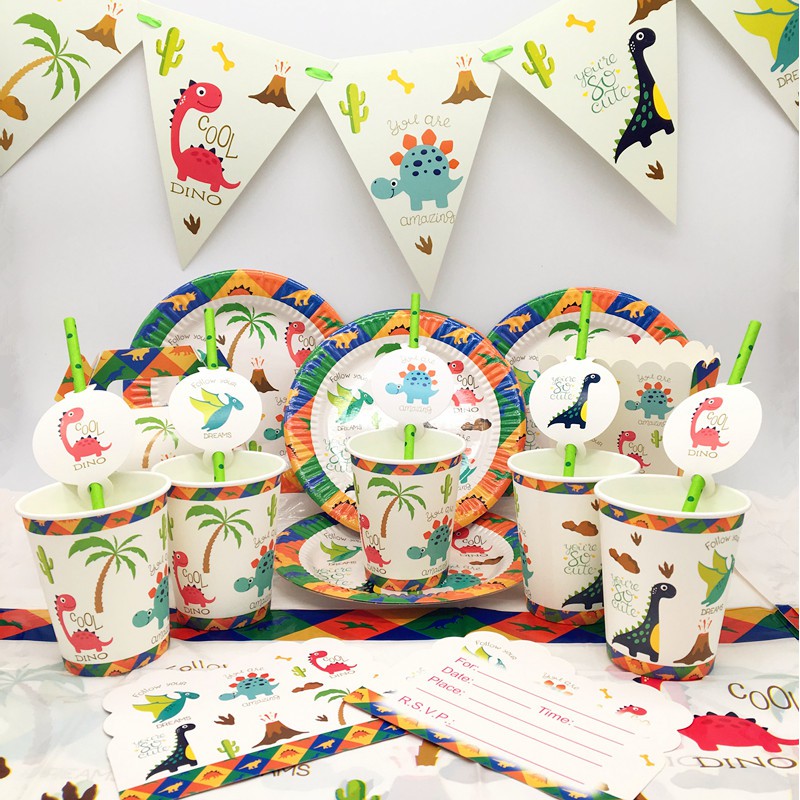 Dinosaur Theme Party Decoration Dino Pattern Paper Cups Plates