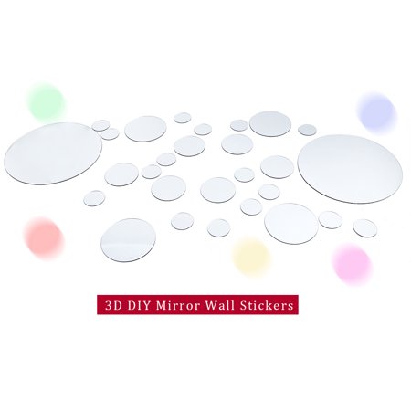 30pcs Silver Diy Circle Mirror Wall Stickers Home Decoration