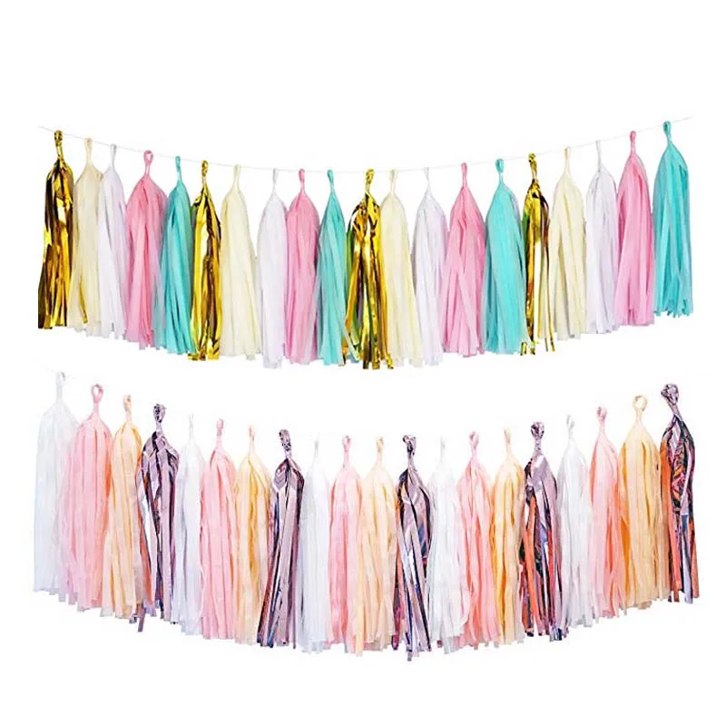 20pcs Wedding Tissue Paper Tassel Garland Pink Blue Banner Party