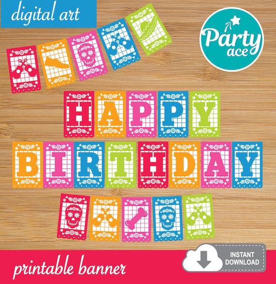 Mexican Happy Birthday Printable Banner For Party Decoration Etsy