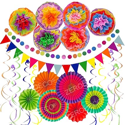 Ideal For Birthdays Fiesta Mexicana Tissue Fans Banner Party