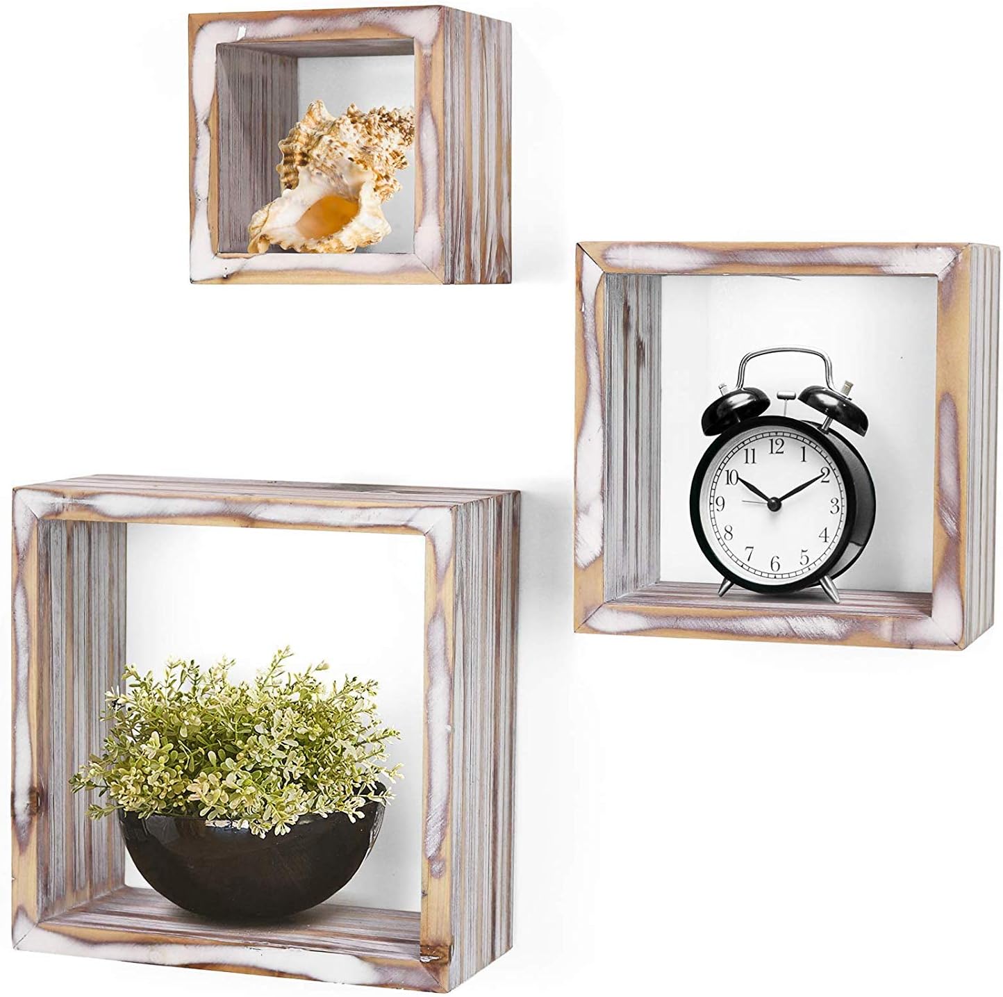 Amazon Com Greenco Set Of 3 Rustic Cube Wall Mounted Floating