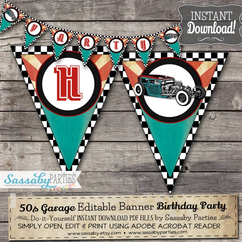 50s Garage Party Banner Rock N Roll Instant Download Etsy
