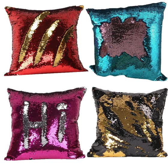 Shop Mermaid Sequin Glitter Throw Pillow Case Sofa Waist Cushion