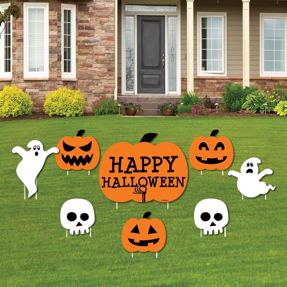 What types of outdoor halloween decorations are there. From bar accessories and party themes to halloween party favors and decor spirit halloween truly has everything you need in the world of halloween party supplies. Yard signs for halloween props yard stakes pumpkin ghost monster yard sign scary theme yard sign stakes for halloween decorations outdoor lawn decorations pack of 6 yard decorations for haunted house.