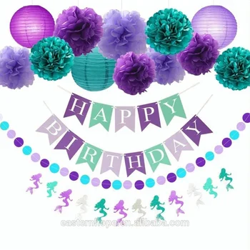 Little Mermaid Party Supplies Happy Birthday Banner Flag Paper
