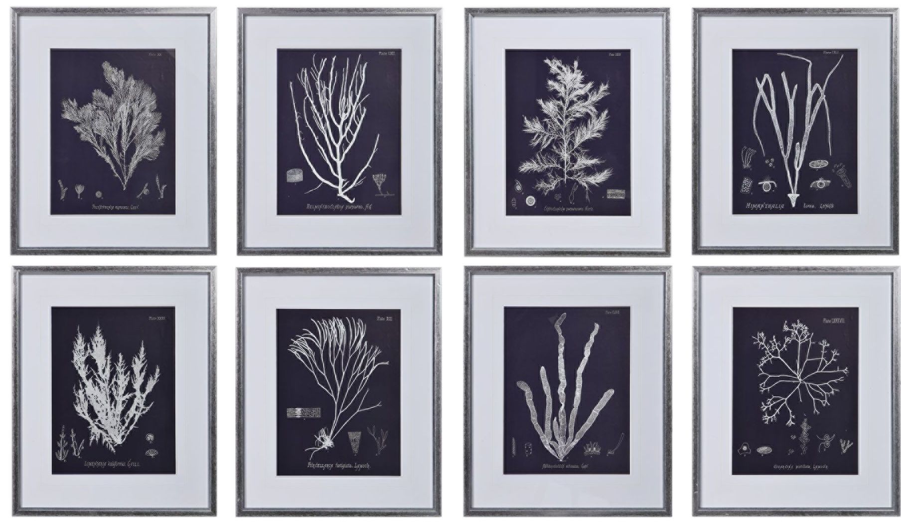Coral On Navy 23 1 4 High 8 Piece Framed Wall Art Set 64y06
