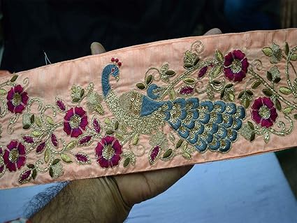 Amazon Com Home Decor Peacock Design Embroidered On Peach Dupioni