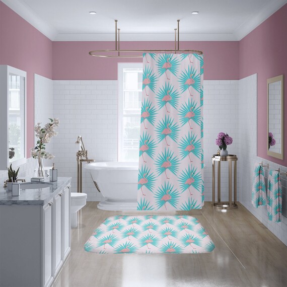 Pink Flamingo Tropical Shower Curtain Bathroom Set Long Etsy