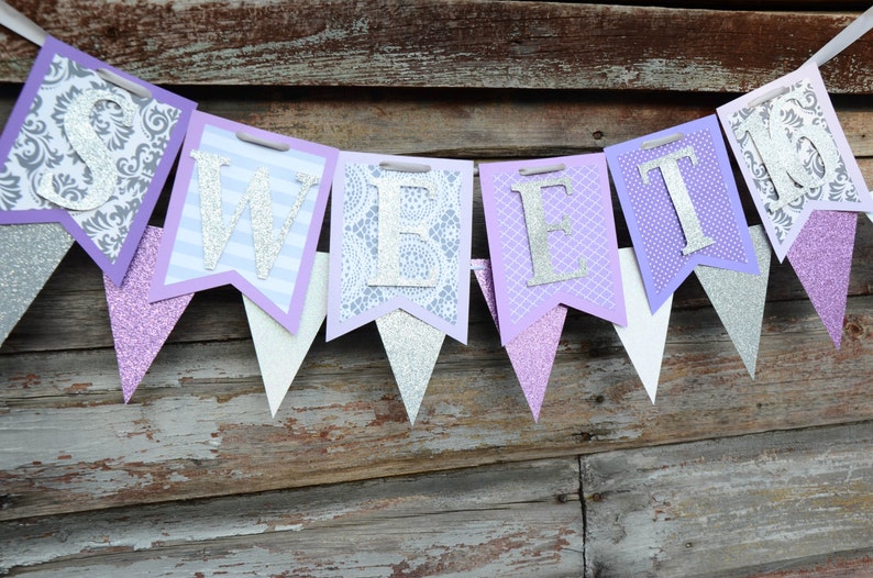 Sweet Sixteen Banner Sweet Sixteen Party Decor Purple Etsy