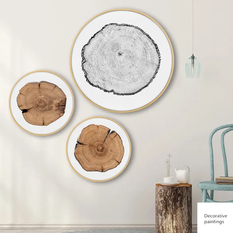 Modular Pictures Modern Home Decor Imitation Wood Grain Round Wall