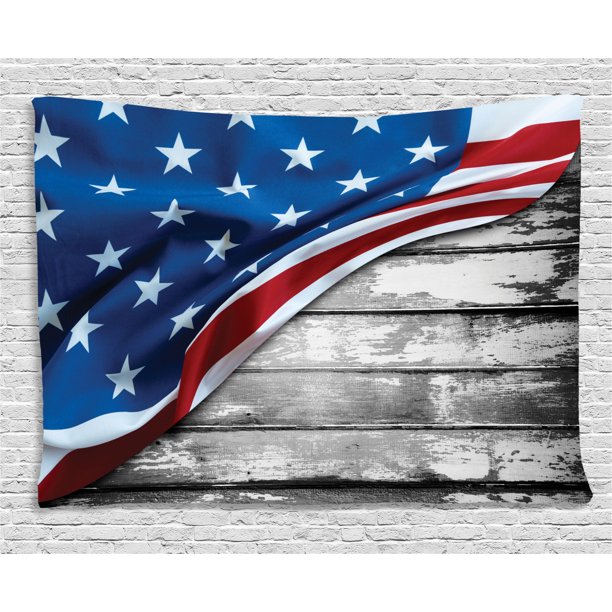 American Flag Decor Tapestry Close Up Design Flag Over Antique
