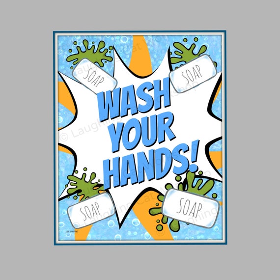 Wash Your Hands Kid Bathroom Decor Comic Kid Superhero Print Etsy