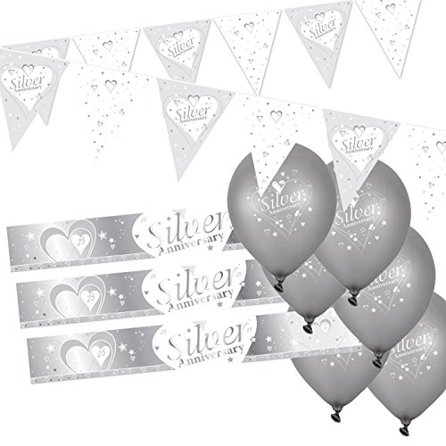Amazons choice for silver wedding anniversary decorations party decor 25th silver anniversary heart themed bunting banner 15 flags for guaranteed simply stylish party decoration. No matter what youre looking for or where you are in the world our global marketplace of sellers can help you find unique and affordable options. This colour is used in all sorts of decor so it would not come as any surprise if you decide on using silver wedding decorations for your big day.