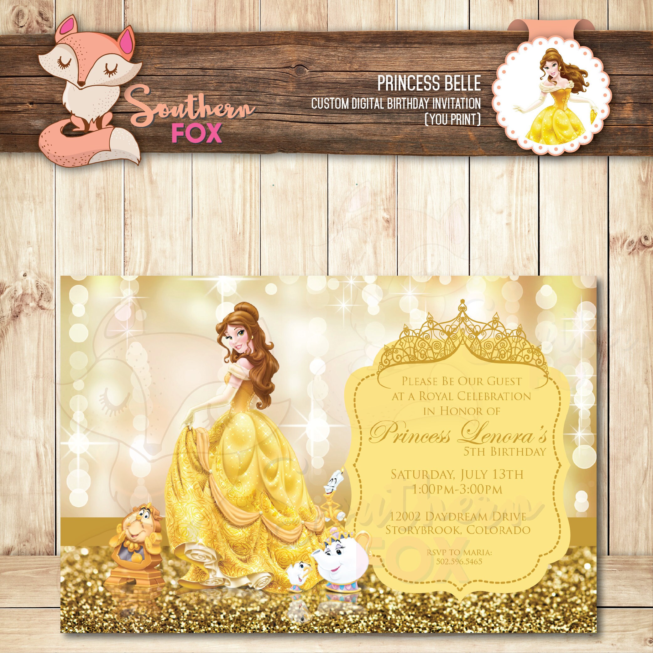 Belle Birthday Invitation Digital Invitation Belle Birthday Etsy