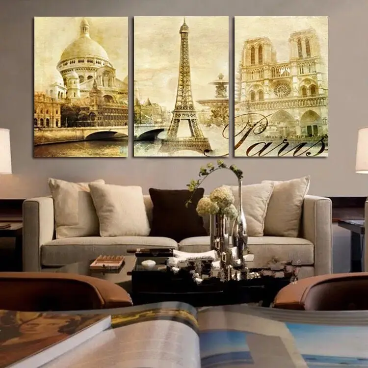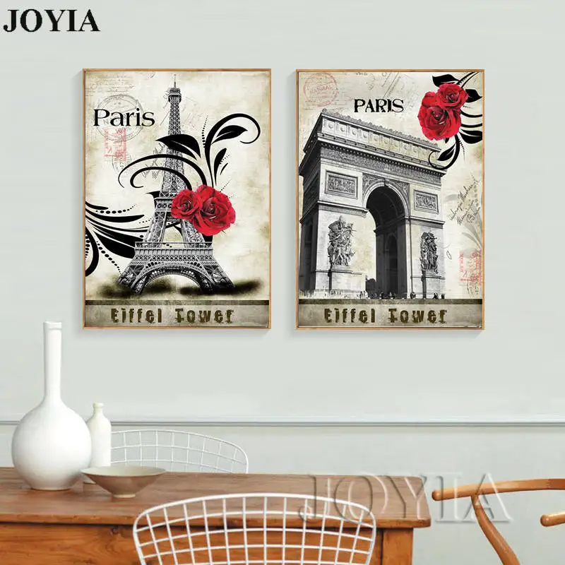 Vintage Paris Canvas Art Paintings Eiffel Tower Antique Pictures