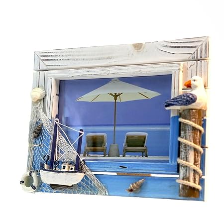 Wooden Beach Style Seagull Photo Picture Frame 21x16cm Ocean Wall