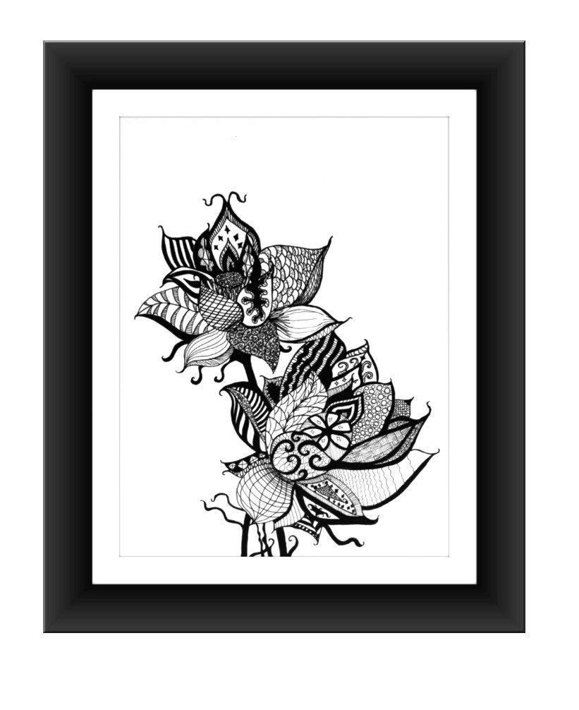 Amazon Com Poster Art Lotus Flowers In Zentangle Style Pen And