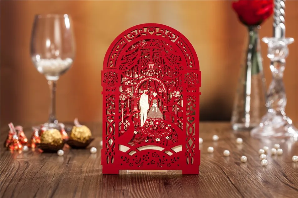 100pcs Red Luxury 3d Church Wedding Invitations Cards Card